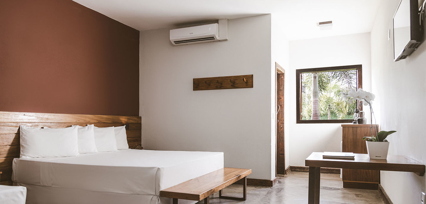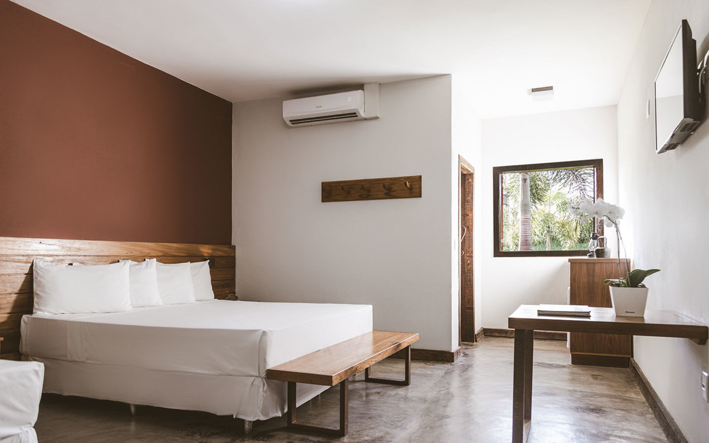 Apartamento completo com ar condionado, tv tela plana, minibar e uma deliciosa e aconchegante varanda equipada com uma mesinha para refeições ou trabalho e uma rede para seu descanso. Contato com a natureza sem perder a segurança e a privacidade.