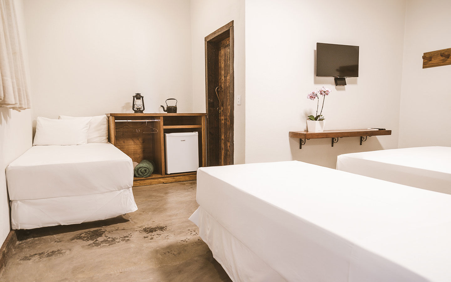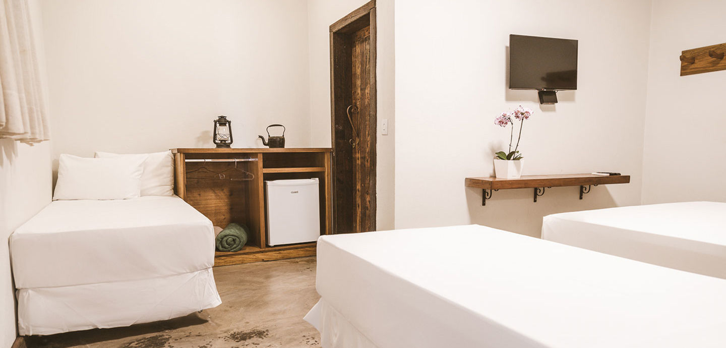 Localizado em uma área exclusiva da fazenda, contendo apenas seis unidades habitacionais, os apartamentos têm um estilo Vintage; com cama de casal + cama de solteiro (uma, duas ou três). Ideal para família e amigos.